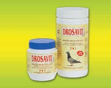 Właściwości i działanie: To hit na rynku gołębiarskim poprzez unikatowy skład cennych surowców. Zawiera dużą dawką drożdży piwnych o specyficznym, bogatym składzie, szczególnie witamin z grupy B. Ponadto zawiera suszony, mielony czosnek najwyższej jakości. Dodatek kwasu cytrynowego zwiększa wartość tej odżywki. Kompleks składników zawartych w Drosavicie oddziałuje bardzo korzystnie na organizmy gołębi.