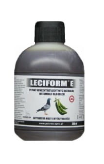 Właściwości i działanie: Płynny koncentrat lecytyny z naturalną witaminą E dla gołębi, aktywator mocy i wytrzymałości. Lecytyna, zawarta w preparacie, to substancja niezbędna do prawidłowego funkcjonowania organizmu ptaka. Jest składnikiem komórek ciała oraz ważnym elementem składowym mózgu i układu nerwowego. Niezwykle korzystnie wpływa na prawidłowy przebieg procesów metabolicznych. Wspomaga funkcje hormonalne i immunologiczne. Zwiększa przyswajalność i wykorzystanie energetyczne tłuszczów. Wzmacnia odporność na infekcje i zdolność regeneracji po intensywnym wysiłku fizycznym. Podnosi wytrzymałość mięśni oraz wydolność lotową. Zapewnia wysoką elastyczność i gęstość upierzenia. Wspomaga wzrost i rozwój młodych. Działa osłonowo na wątrobę. Szczególnie zalecana w okresach silnego obciążenia organizmu podczas lęgów, lotów i pierzenia.