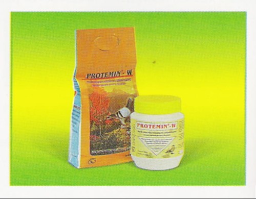 Odżywka aminokwasowa z kompletem witamin. O jej niezwykle korzystnym oddziaływaniu przekona się każdy hodowca, który poda ją swoim ptakom. Jej korzystne oddziaływanie uwidoczni się już po okresie 2 tygodni. Młode rozwijaj ą się doskonale, a u gołębi lotyjących zwiększa się wyraźnie ich forma i wytrwałość w lotach. PROTEMIN-W należy podawać poprzez karmę ziarnistą podobnie jak DROSAVIT i APIFAC. Wskazane jest również mieszanie wymienionych produktów i podawanie poprzez karmę.